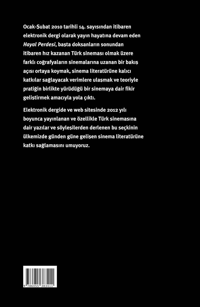 Elektronik dergide ve web sitesinde 2012 yılı boyunca yayınlanan ve özellikle Türk sinemasına dair yazılar ve söyleşilerden derlenen bu seçkinin ülkemizde günden güne gelişen sinema literatürüne katkı sağlamasını umuyoruz.