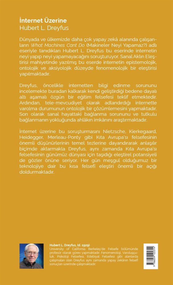 İnternet üzerine bu soruşturmasını Nietzsche, Kierkegaard, Heidegger, Merleau-Ponty gibi Kıta Avrupa’sı felsefesinin önemli düşünürlerinin temel tezlerine dayandırarak anlaşılır biçimde aktarmakla Dreyfus, aynı zamanda Kıta Avrupa’sı felsefesinin günümüz dünyası için taşıdığı eleştirel potansiyeli de gözler önüne seriyor. Her gün meşgul olduğumuz bir teknolojiye dair bu kısa felsefî eleştiri önemli bir açığı doldurmaktadır.